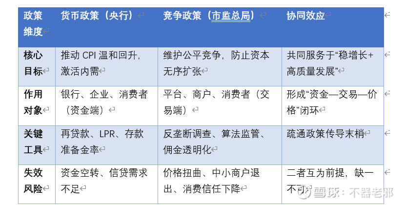货币政策工具与竞争政策的协同目标对照