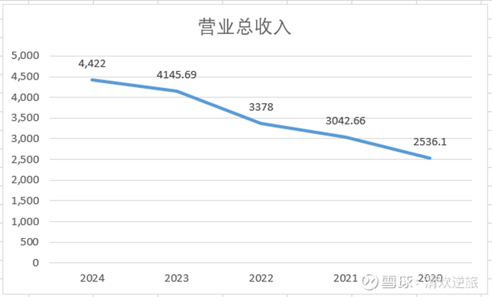 A股白酒上市公司总营收从2020年的2536.1亿上涨到2024年的4422亿,上涨了74%。