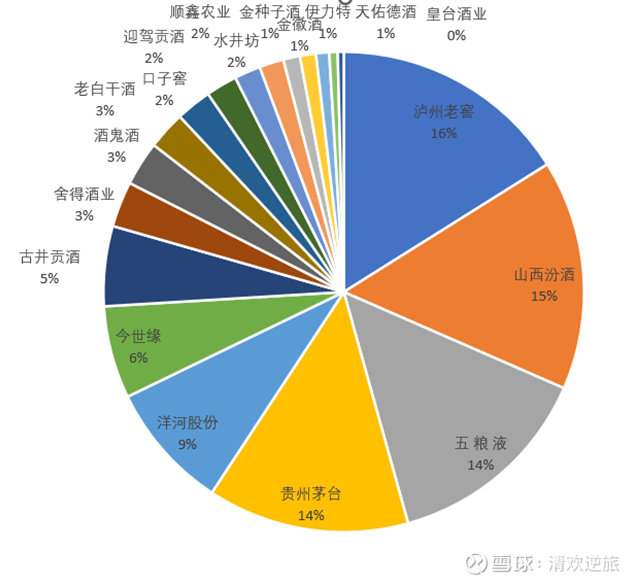 中证白酒指数集合了从事白酒生产与销售的所有19家A股上市公司,包括贵州茅台、五粮液、山西汾酒、古井贡、泸州老窖等。指数权重最大的几个品牌依次是泸州老窖、山西汾酒、五粮液、贵州茅台、洋河股份、今世缘、以及古井贡。