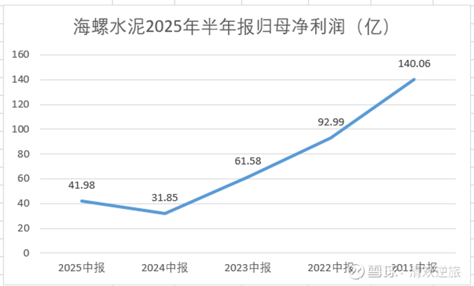 海螺水泥有披露公司上半年生产成本数据,2025年上半年相对于2024年生产成本每吨下降了13.3元。在水泥价格相对2024年略有提升的情况下,生产成本的大幅降低,带来了利润的大幅上涨。