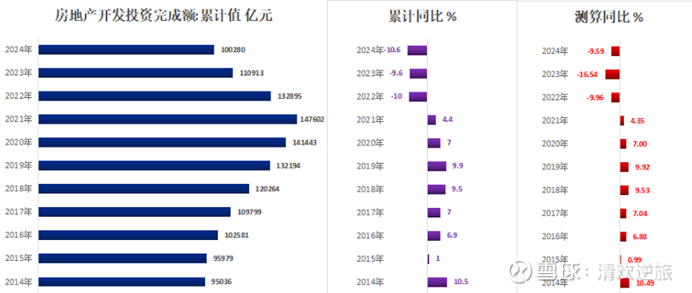 房地产开发深陷泥潭,需求大幅萎缩。房地产开发完成额从2022年开始,已经持续三年同比负增长。2025年上半年,全国房地产开发投资为46658亿元,同比下降11.2%。这段文字我为什么要加粗呢?因为2025年上半年的房地产开发增速同步下降额度已经创历史新低了。房地产开发从1999年到2021年增速一直是正增长,2022年我们迎来了一个新的时期:负增长时期。从2022年到2025年上半年的增速状况来看,其负增长的趋势还在加速呢。