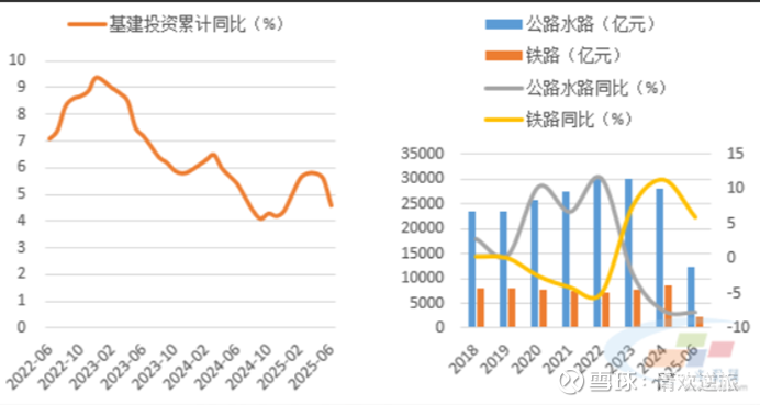 基建增速失速,无法给水泥提供足够的支持。2025年1-6月,全国基建投资增速4.6%(狭义),较2024年加快0.2个百分点,较为平稳。其中,与水泥需求密切相关的公路水泥投资完成额12383.9亿元,同比下降7.7%。从数据趋势上看,基建的增速是在不断放缓,无法给水泥需求提供足够的支撑。