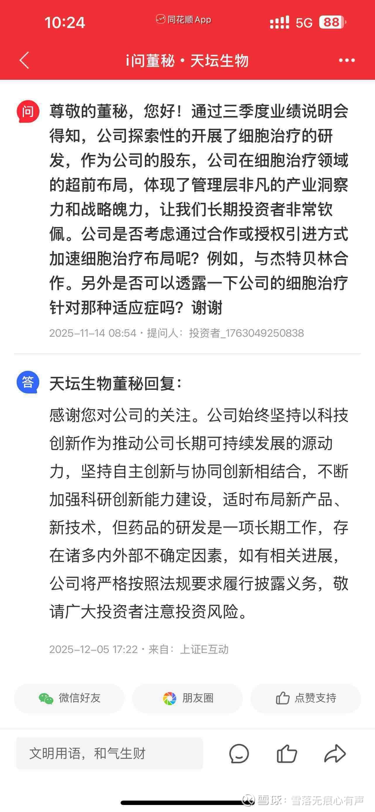 $天坛生物(SH600161)$ $卫光生物(SZ002880)$ 卫光生物已经披露了细胞治疗的进军方案,天坛生物三季度业绩发布会里提到的,关于探索性开展细胞治疗的进展也该纰漏一些细节了吧,之前不想纰漏可能是怕暴露战略意图引来竞争,不过天坛生物的研发能力始终令我放心。另外卫光生物搭建的是细胞治疗的市场化平台,类似于CDMO,天坛生物则更有可能是针对血友病的细胞治疗药物开发,两者未来可能形成互补,为重组做准备,实现战略协同。查看图片
