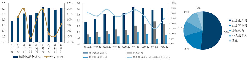 财务数据:1)经营性现金流稳定上涨,续费率 70% 以上;2)成本极为简单,主要为人力成本,经营性现金流长期大于利润;3)大宗生产商和贸易商贡献收入合计超过 80%,获得专业用户认可。