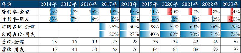 图 2 金蝶&用友订阅与利润情况