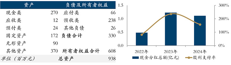 总资产 9 亿元中,净资产 6 亿元,负债主要为预收款 2.4 亿元。