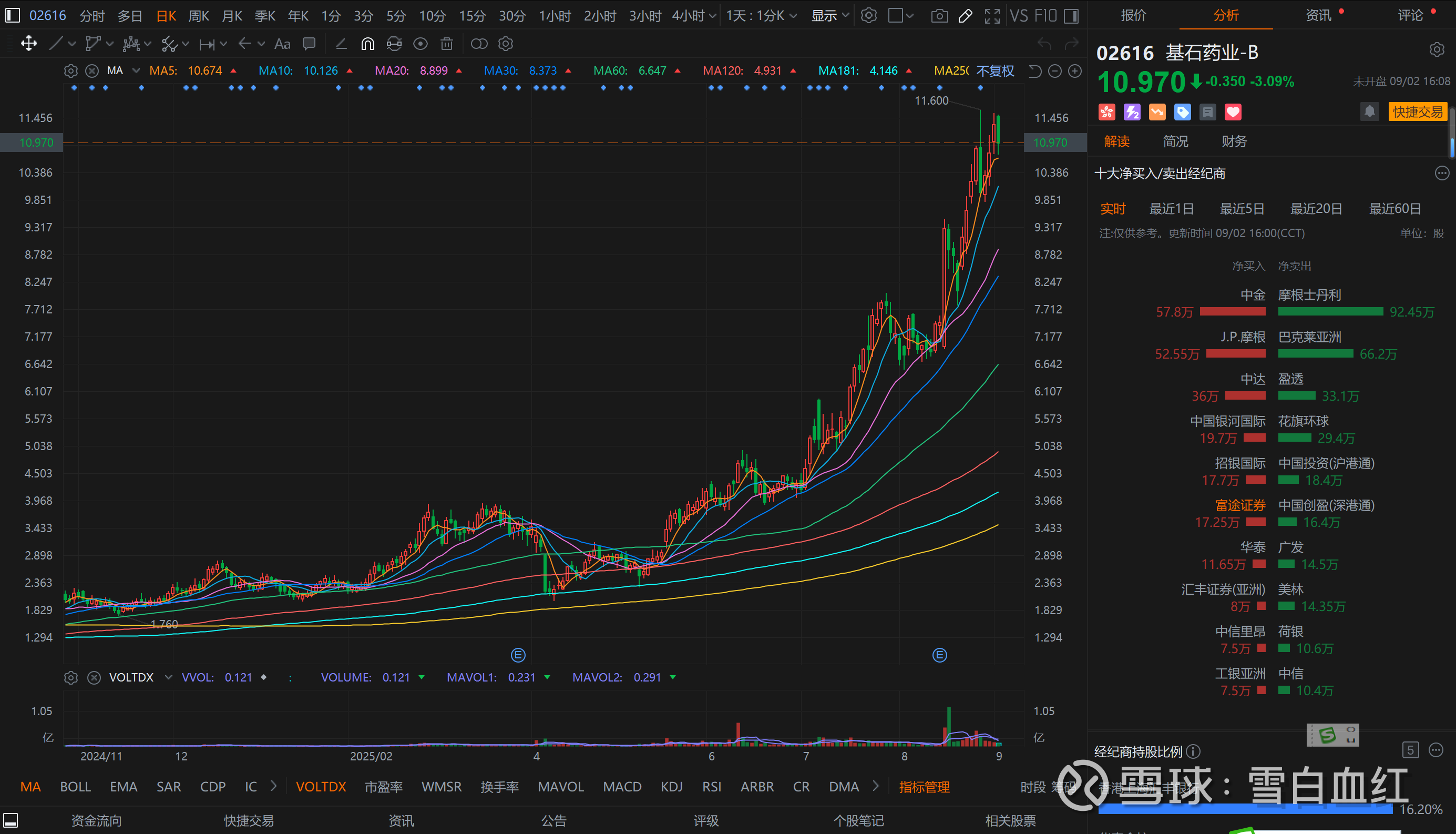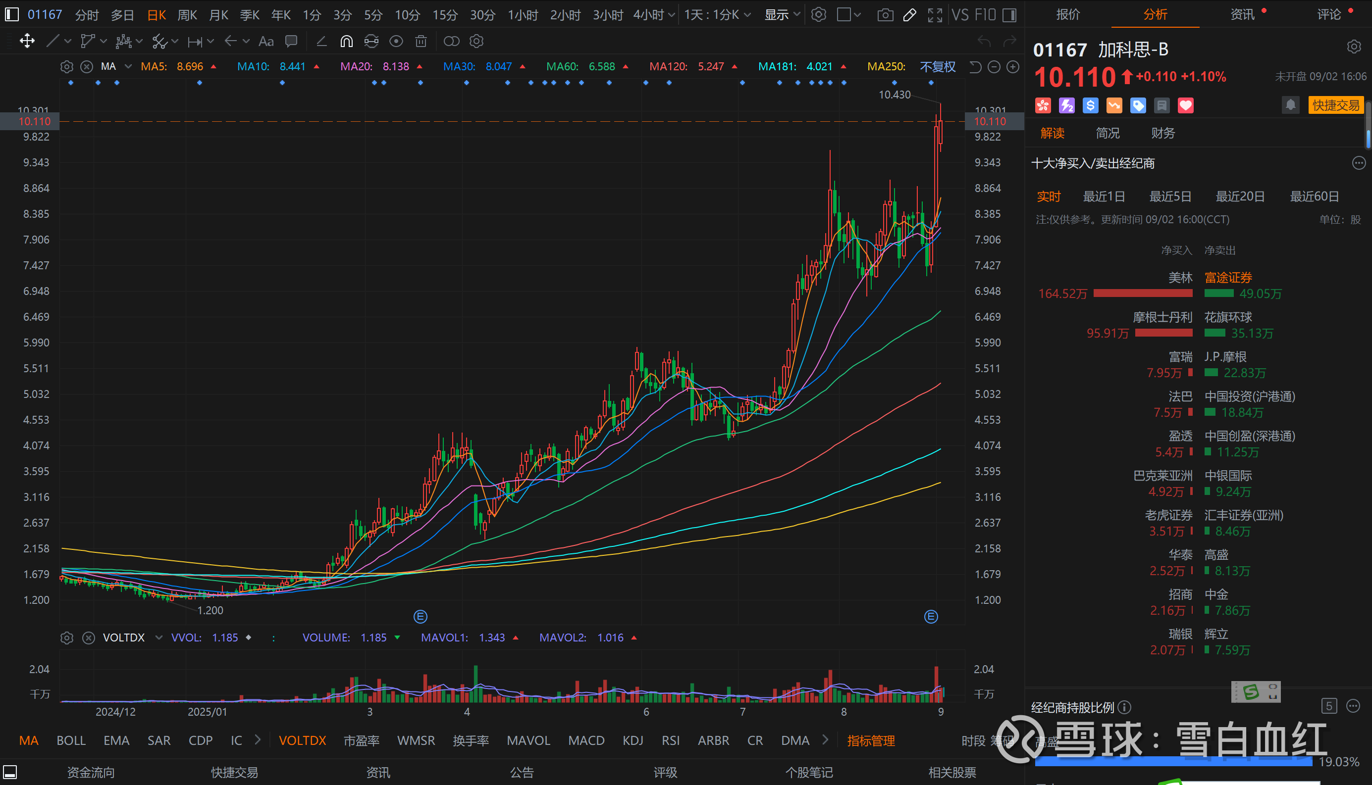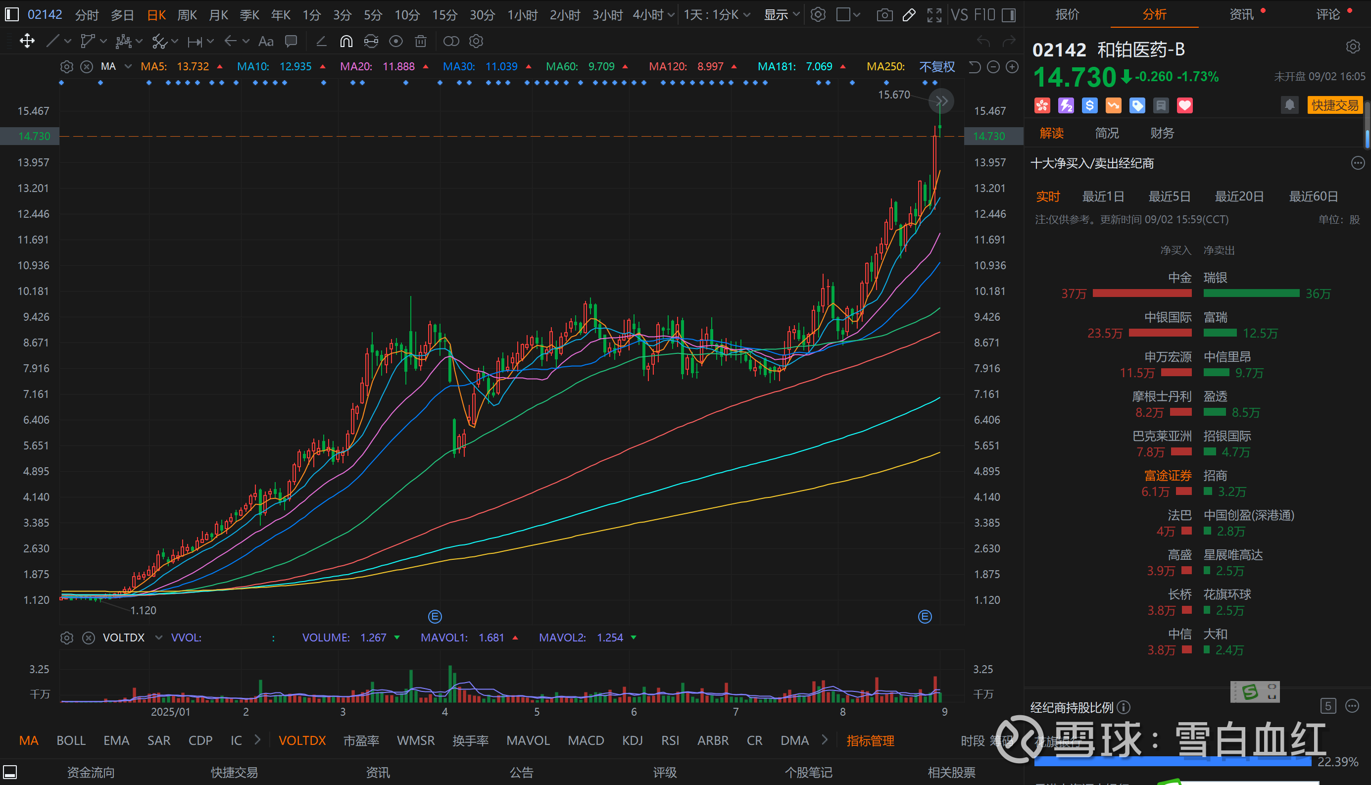 ①、和铂医药:渣打银行前面始终保持0.85-0.95%占比,8月15日开始对倒895万股进来,然后几日均有大额净买入和对倒,然后9月2日举牌;