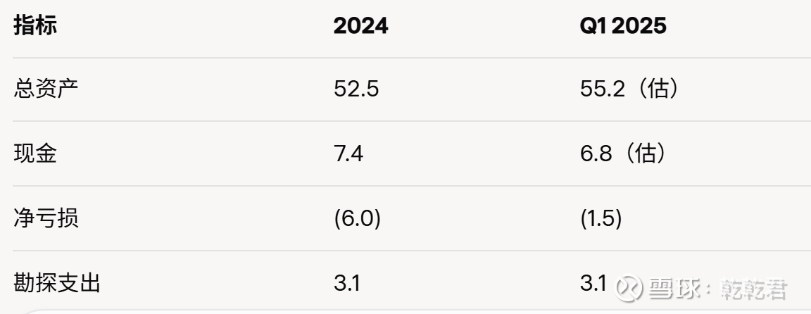 2025 年第一季度报告确认了持续投资,2024 年第四季度支出 8300 万美元,总额升至约 1.15 亿美元(超出初始预算 15%,因通胀和天气因素)。勘探支出 310 万加元,重点放在填充钻探。公司保持充分资金支持,无预期股权稀释。生产启动后,预计在 3200 美元/盎司金价下每年现金流入超过 2 亿美元,实现债务快速偿还并自筹勘探资金。