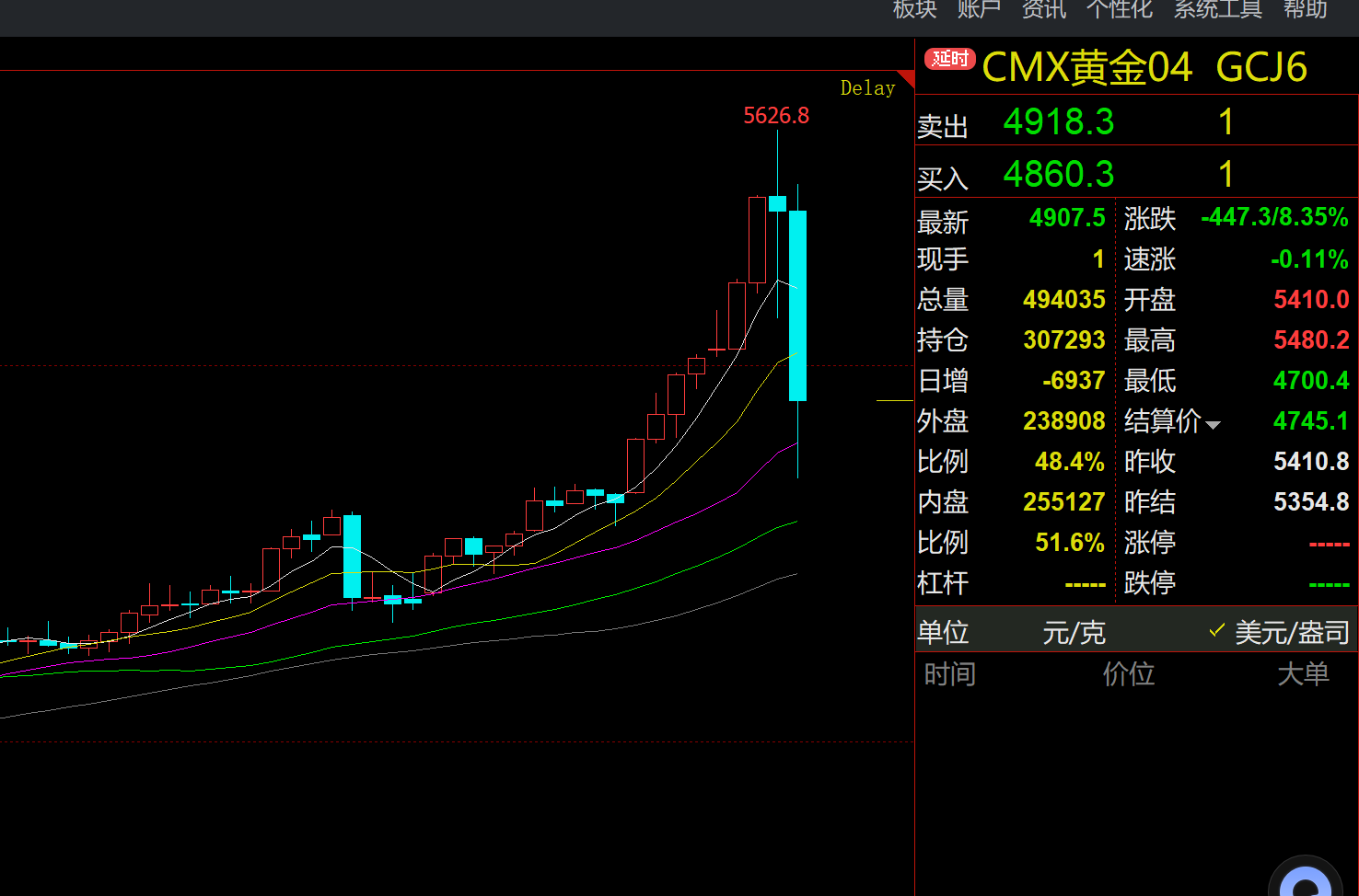 1月29日,我特别在四川黄金涨停的时候。写了一篇文章《风启一刀(1.29)黄金VS证券》,我只是想说明这个世界多么的疯狂。周五外盘黄金的大阴线,是对多头的一种屠杀。期货市场一个大阴棒是可以让多头爆仓的。黄金的上涨是一个世界级别的赌局。目的就一个把很多人带入这个赌局,不管是多头还是空头都会绞杀得头痛晕头转向。