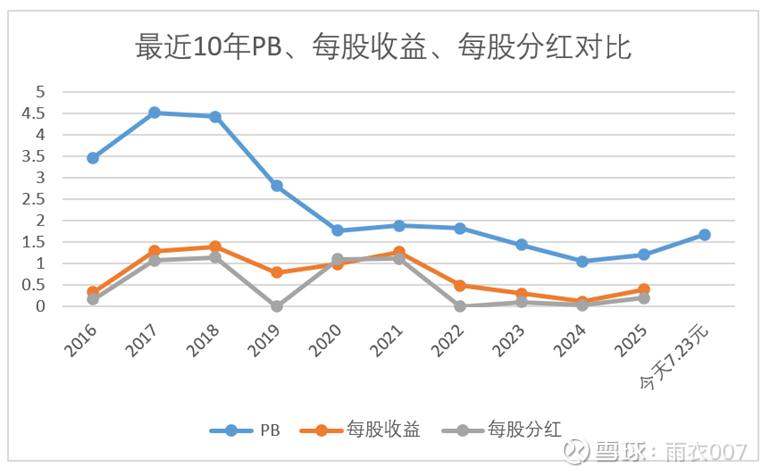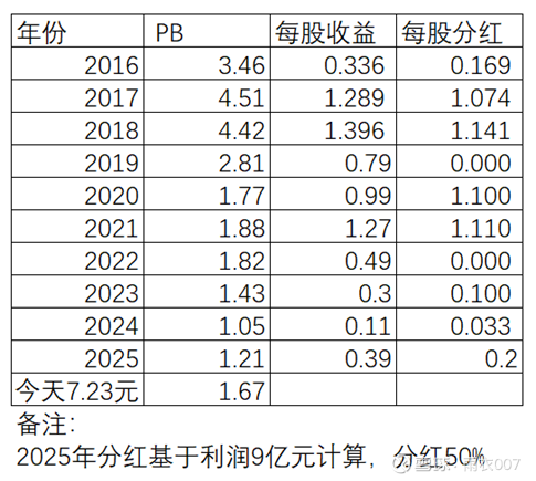 基于Q3的每股净资产4.33元,7.23元的股价对应PB为1.67(7.23/4.33),实际年报后,每股净资产大概可以提升0.1元,PB下调为1.63(7.23/4.43)。