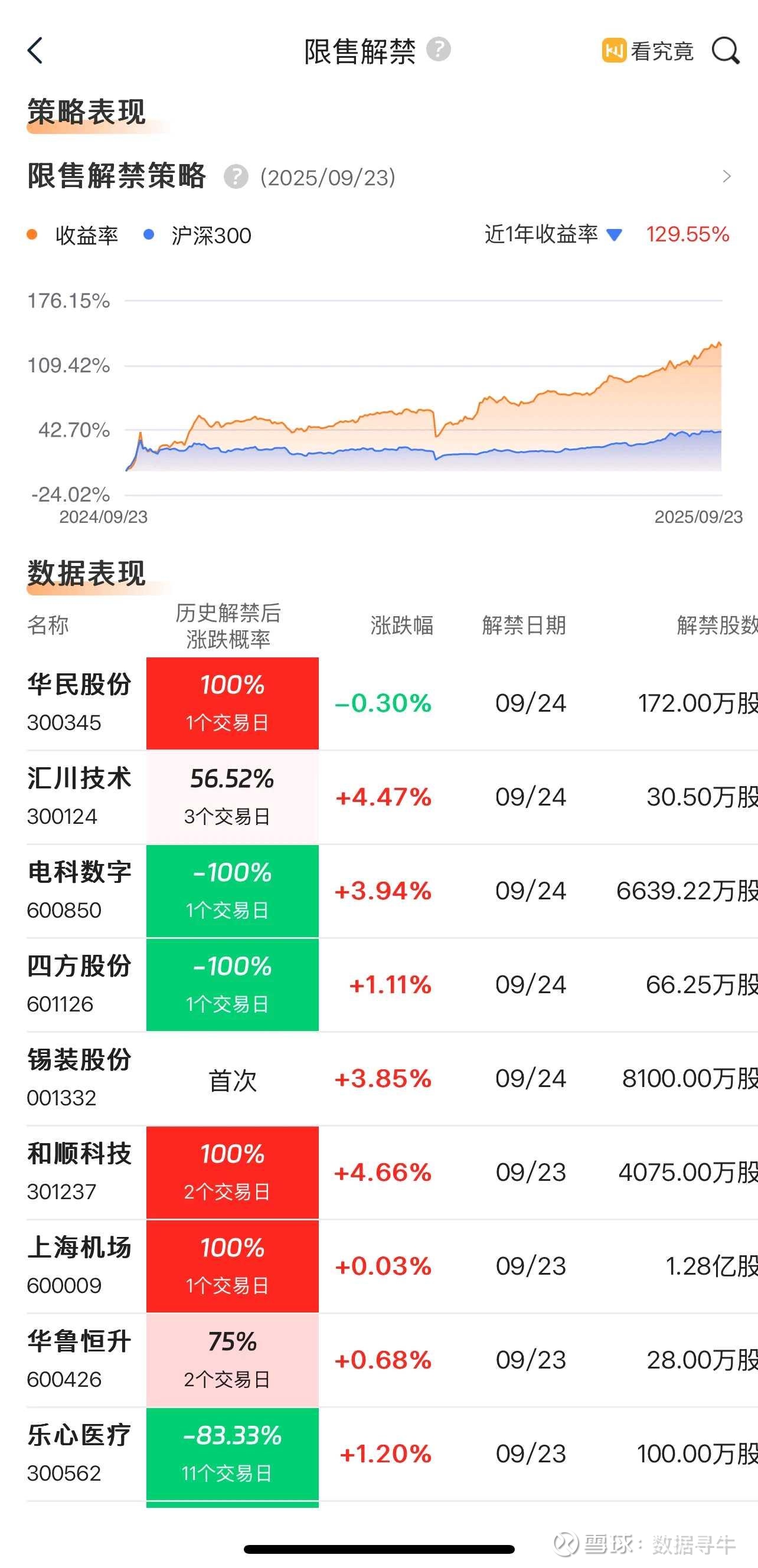 今日共5家公司解禁限售股!其中华民股份(300345)解禁172万股!数据显示,该公司触发解禁后次日的股价上涨概率极高!
