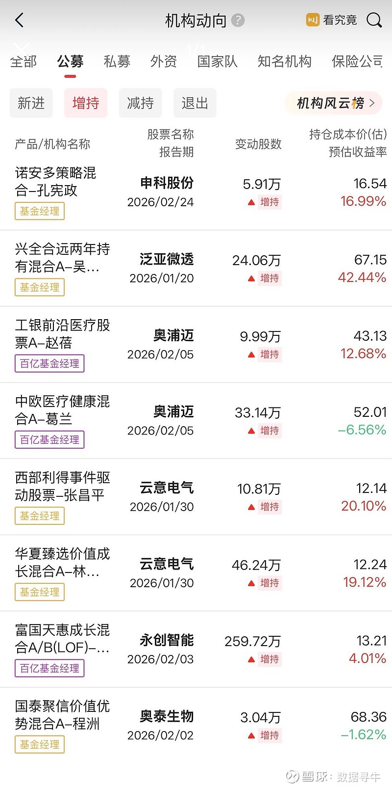 最新公募增持名单来了!百亿基金经理带头扫货,这几个标的被集体盯上了👇