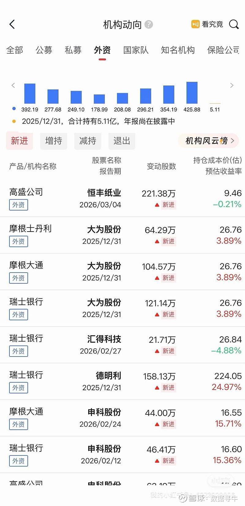就在3月4号,高盛直接进场拿了221.38万股恒丰纸业,属于纯纯的新进。整体持仓成本大概在9.46元附近,现在还小亏0.21%,属于刚建仓的正常波动行业逻辑:1. 造纸行业供需格局改善,下游包装、文化纸需求逐步回暖2. 原材料浆价回落,企业盈利空间修复3. 出口订单边际改善,行业景气度有望触底回升