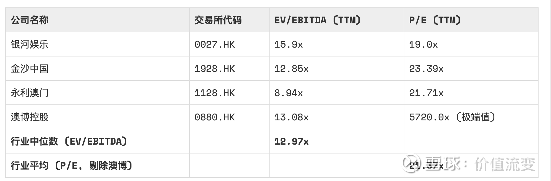 我们选取了澳门市场的核心参与者作为可比公司,以2025年9月9日的市场数据[9]为基准。