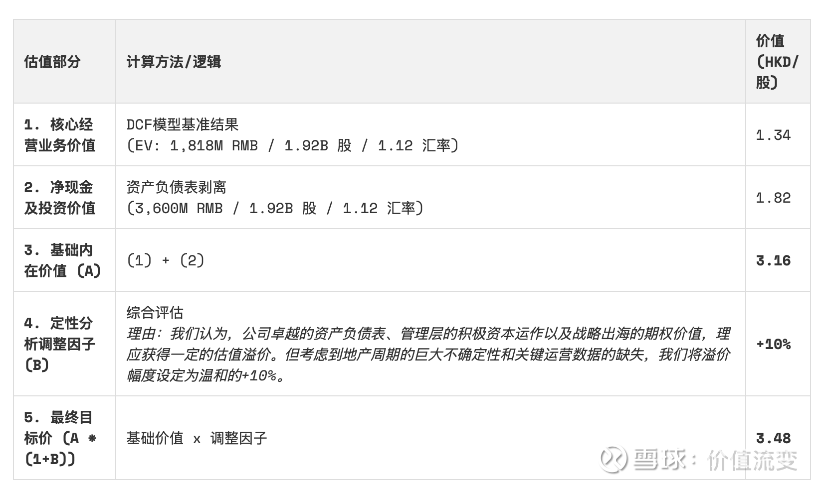 转换为港币: 按1.12的汇率(CNY/HKD)估算,得出每股内在价值约为 3.16 HKD。