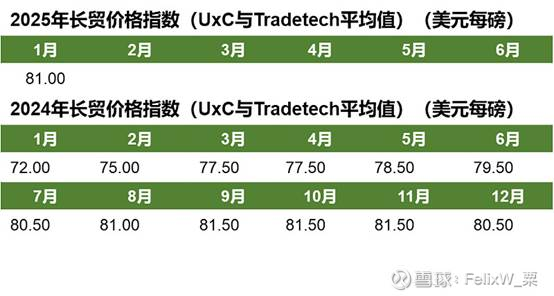 截止2月9日,根据市场信息,本周录得9单合计110万磅现货交易,2025年总计录得51单550万磅现货交易;本周没有录得任何的长贸交易,2025年总计录得12单1700万磅长贸交易。