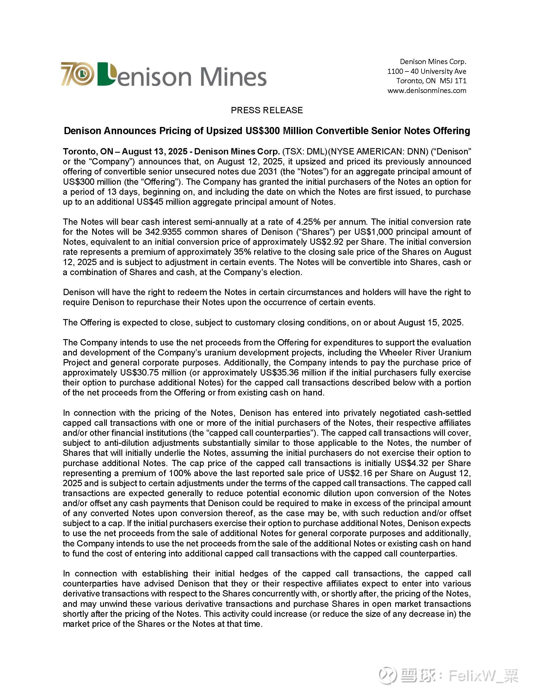转股价:初始转换率为每1,000美元本金兑换342.9355股普通股,初始转换价格相当于每股约2.92美元。基于8月12日收盘价,初始转换率呈35%溢价