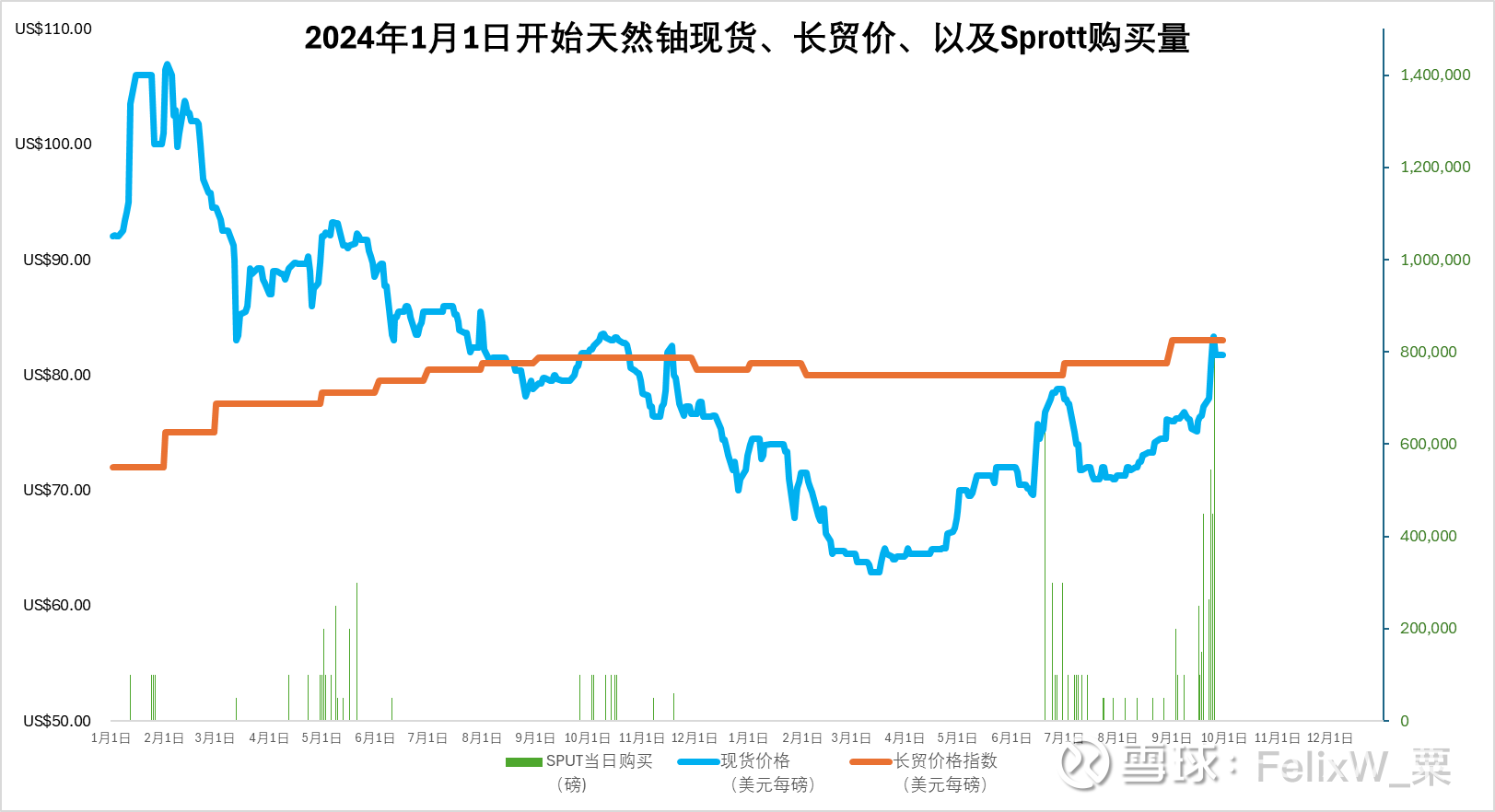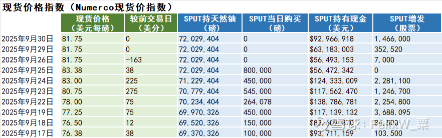 天然铀现货与长贸价格指数 :(0美分)(附:Sprott Physical Uranium Trust铀持仓)