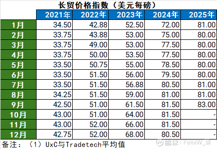 9月30日,星期二,天然铀现货价持平,收81.75美元每磅,全球天然铀股票指数URNJ涨0.03%。9月份长贸价格涨2美元,收83.00美元每磅.