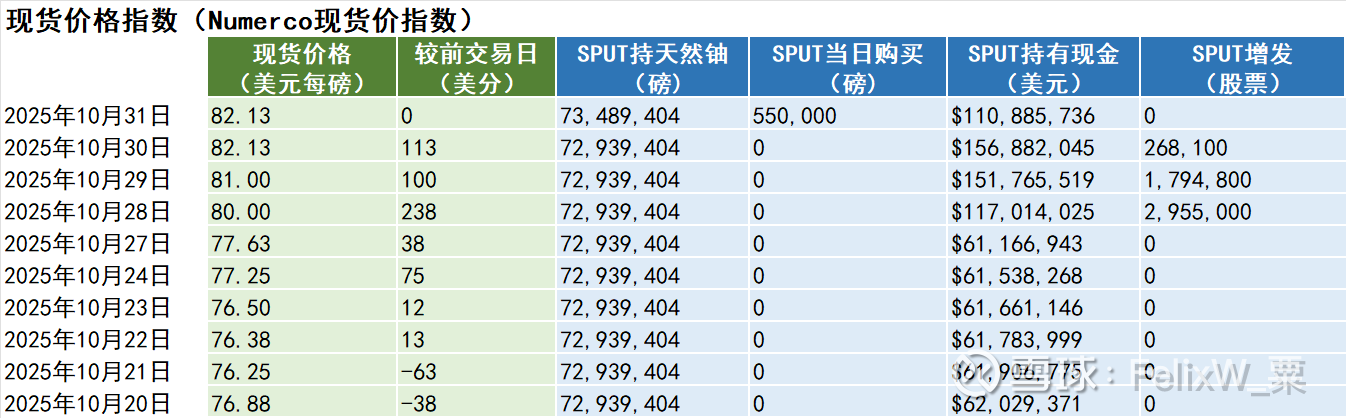 天然铀现货与长贸价格指数 :(0美分)(附:Sprott Physical Uranium Trust铀持仓)