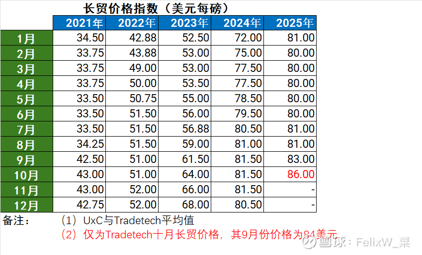 10月31日,星期五,天然铀现货价持平,收82.13美元每磅,全球天然铀股票指数URNJ跌3.09%。Tradetech发布10月份长贸价格为86美元每磅,较其9月份价格上涨2美元。
