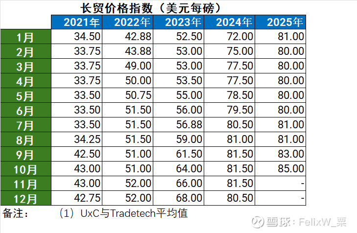天然铀现货与长贸价格指数 :(-263美分)(附:Sprott Physical Uranium Trust铀持仓)
