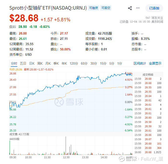 #今日话题# #核电概念股# #天然铀# $中广核矿业(01164)$ $铀矿ETF-Global X(URA)$ $北岸全球铀矿开采ETF-Exchange Traded Concepts(URNM)$
