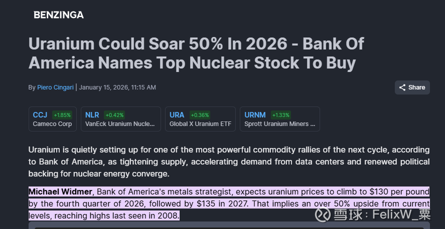 #今日话题# #核电概念股# #天然铀# $中广核矿业(01164)$ $铀矿ETF-Global X(URA)$ $Cameco Corp(CCJ)$
