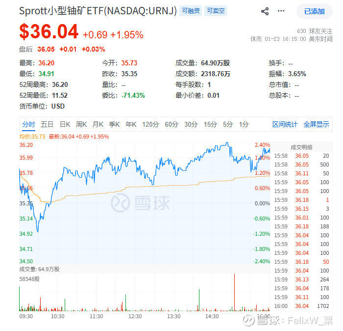 天然铀公司股价指数参考:(+1.95%)Sprott小型铀矿ETF(NASDAQ:URNJ)