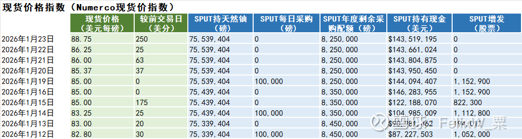 天然铀现货与长贸价格指数 :(+250美分)(附:Sprott Physical Uranium Trust铀持仓)