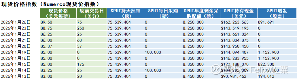 天然铀现货与长贸价格指数 :(+75美分)(附:Sprott Physical Uranium Trust铀持仓)