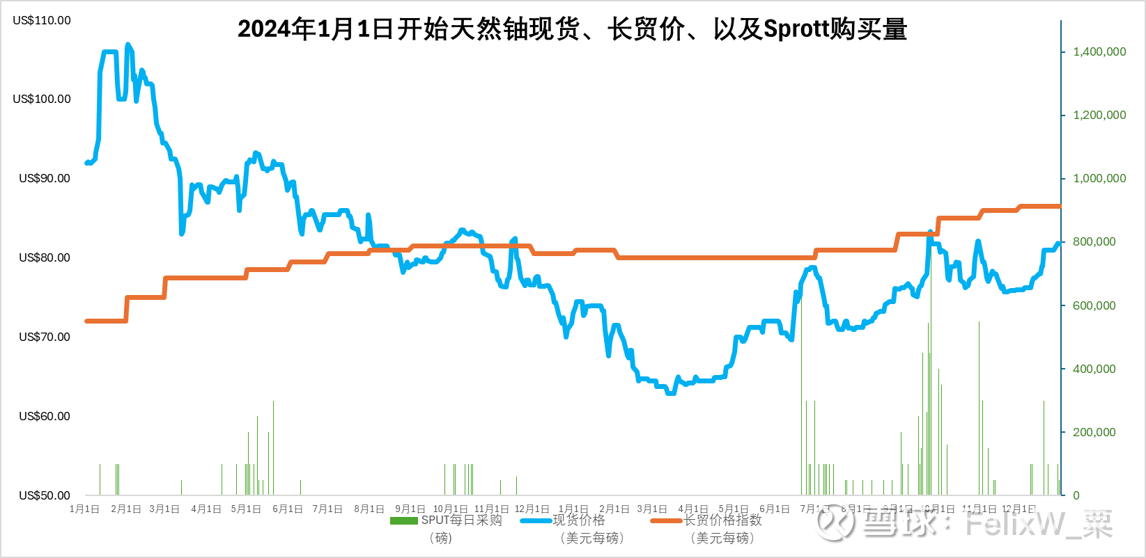天然铀现货与长贸价格指数 :(+250美分)(附:Sprott Physical Uranium Trust铀持仓)