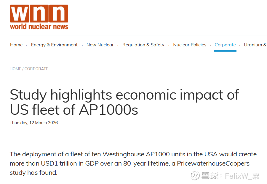"As the only fully licensed, construction-ready advanced reactor available today, the proven AP1000 modular technology is the quickest way to unleash commercial nuclear power in the US to drive our nation's AI dominance globally," said Dan Sumner, Interim CEO, Westinghouse. "This report highlights that work to deploy a 10-unit AP1000 fleet can begin immediately, creating long-term economic benefits as well as high-paying, highly skilled jobs for generations to come."