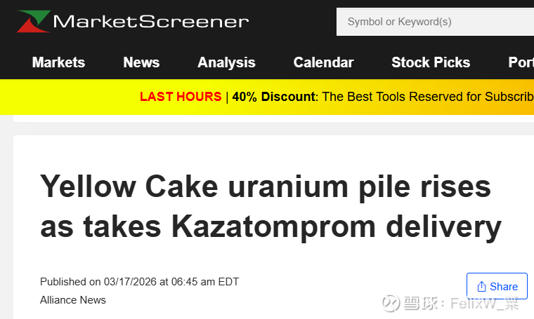 英国实体天然铀投资公司Yellow Cake采购512吨天然铀(1,331,912 磅),其中446吨铀(1,160,766磅)基于与哈原工签署的年采购框架协议,以86.15美元每磅向哈原工采购,采购完成后公司总计持有9,337吨铀(24,274,996磅)。