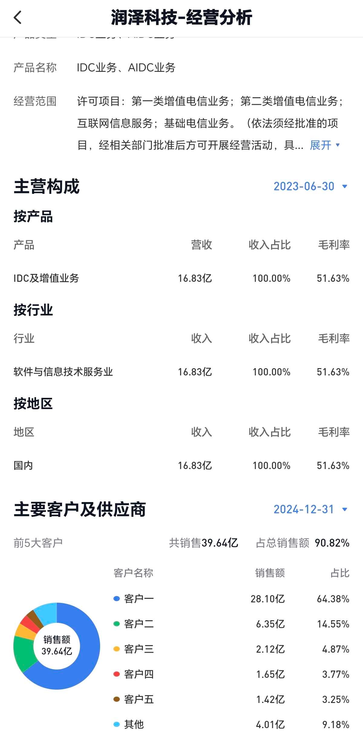 润泽科技在2023年12月以前主营业务一直都是idc,23年底aidc营收并表,每年营收在14亿附近:
