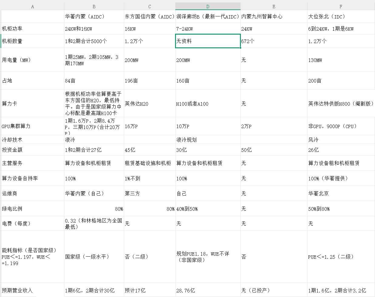 我用表格的形式对比国内目前的算力中心项目(其中包括榕泰张北数据中心),对比完以后大家会很清楚注入资产的优劣程度。