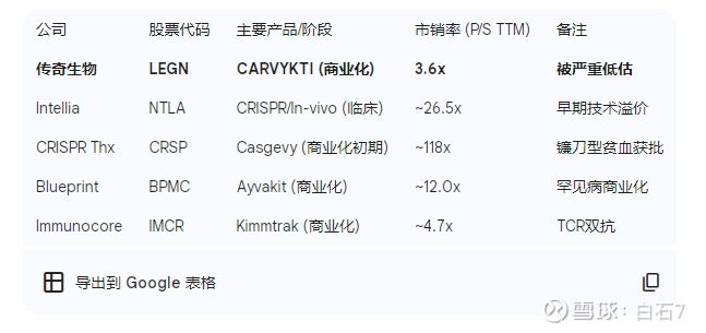 当前传奇生物的PS(TTM)仅为3.6倍。对比同行业处于商业化阶段或拥有重磅后期资产的生物科技公司,这一估值存在显著折价。