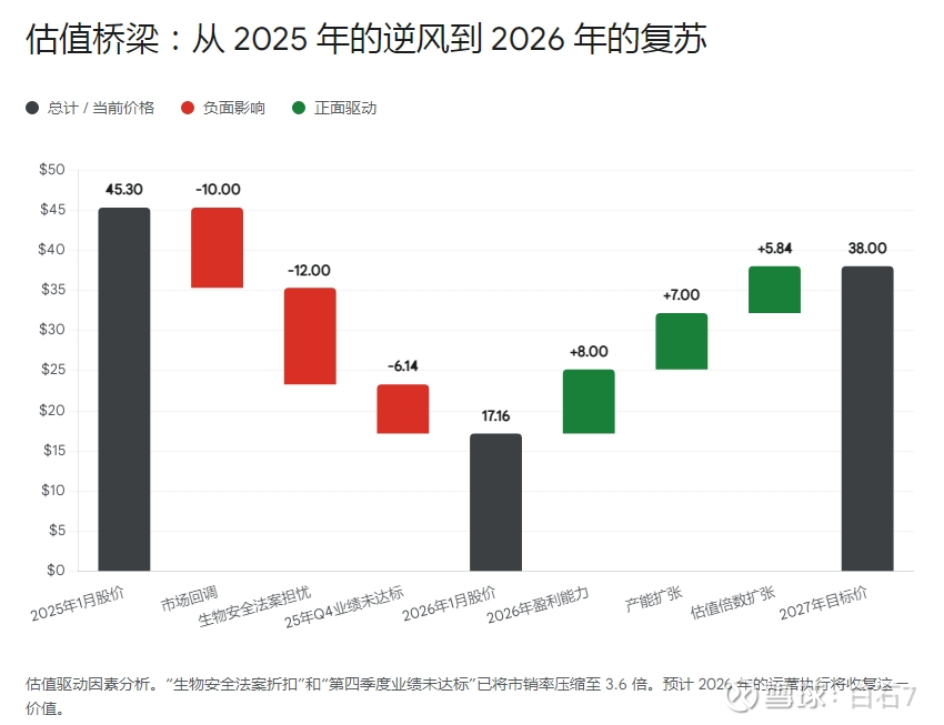 若《生物安全法案》导致强制剥离或严重制裁,股价可能退守至现金价值附近(约$1.0B现金+部分IP价值),即每股约$8-10美元。最大回撤风险约为 -40% to -50%。