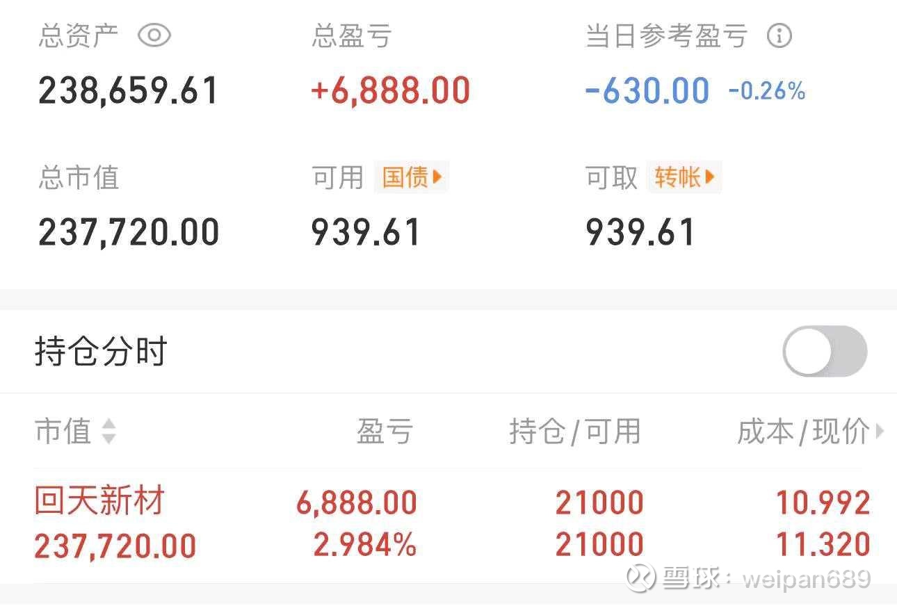 20万实盘操作记录第83天,账户238659。继续持有回天新材。今天大盘大涨,回天新材盘中拉了一下就迅速回落,暂时持有不动,收盘十字星,明天应该大涨了吧,不然就要出来换票了#股票# #财经# #实盘记录#