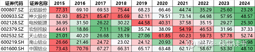负债率下来了:从2021年开始,各大铝企的资产负债率普遍逐年下降。说明企业不再“拼命借钱搞生产”,而是更注重财务稳健,抗风险能力明显增强。