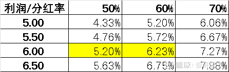 图表:股价12.9元时,不同利润与分红率对应的股息效率。