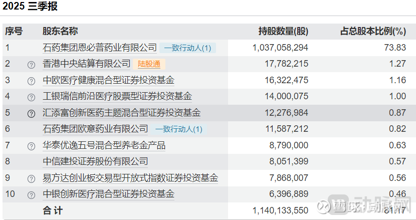 图3. 石药创新2025年三季报前十大股东情况(资料来源:wind)