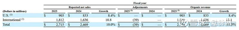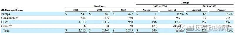 MiniMed的国际化程度较高,来自美国以外市场的营收达到18.1亿美元,占比达到66.7%。同时,美国以外市场的营收增长率也明显更高,2025财年相比2024财年营收增长达到10.8%。