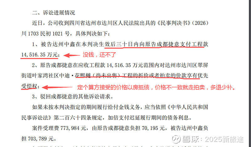 化债阶段:20260323公告,成都捷意14,616.84 万债务法院判决基本可以算结清了,双方认同的方式:要么以房抵债,要么房子拍卖抵债,下一个。。。。。。