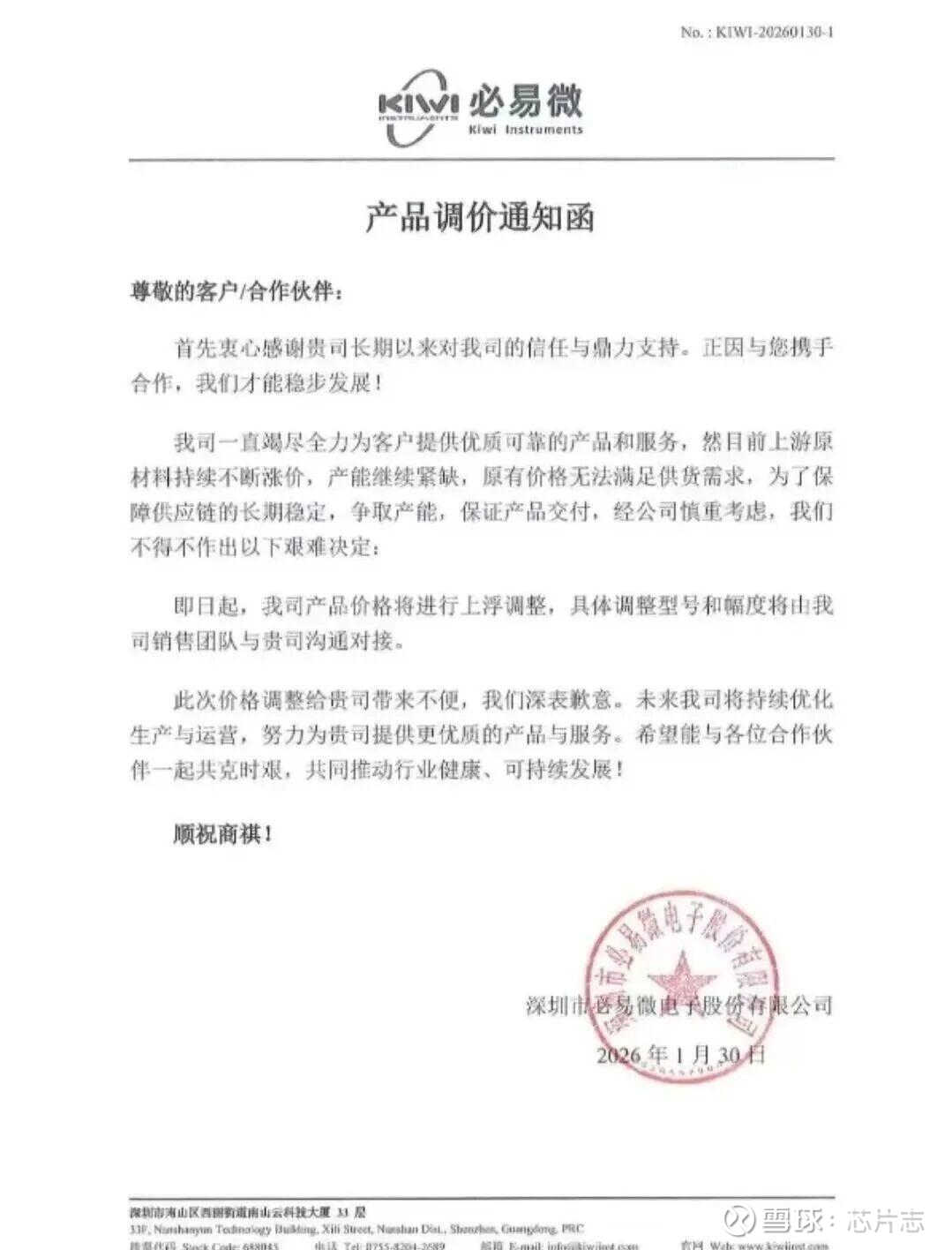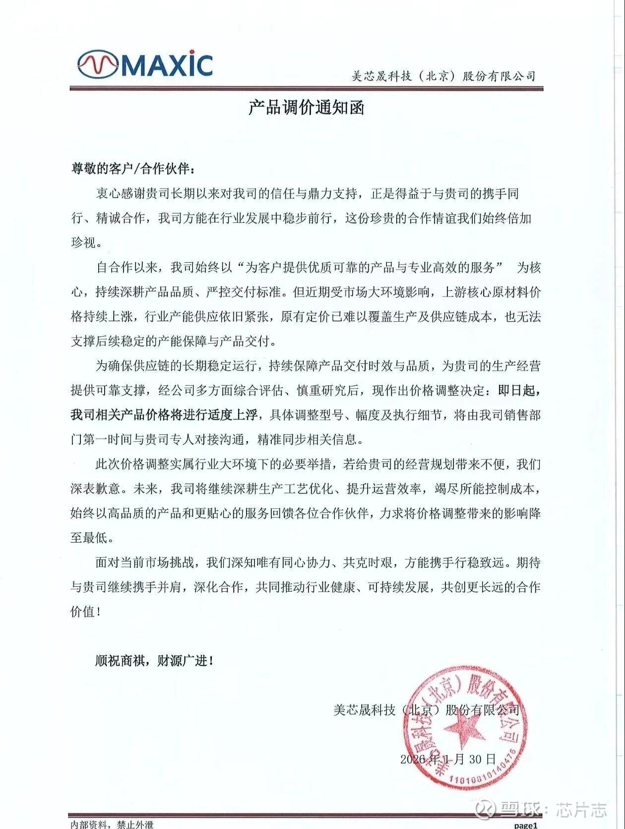 1 月 30 日,美芯晟、必易微两家国产芯片厂商先后发出调价通知函,宣布即日起上调相关产品价格,给原本就处于周期波动中的半导体行业又添了一抹关注的热度。