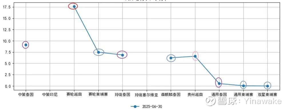 赛轮越南基地也是利润最高的,中策泰国、赛轮柬埔寨、玲珑泰国、森麒麟泰国大家的盈利数据差不多。总体的趋势和营收基本一致。但是有一些不同的地方。