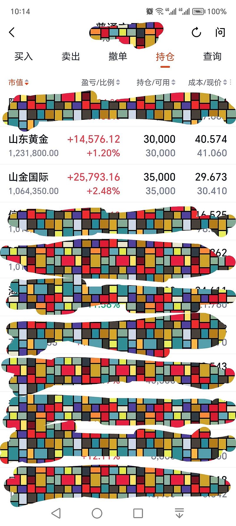$山金国际(SZ000975)$ $山东黄金(SH600547)$这一对黄金父子,今天上午走势有点温吞嘛!昨日大幅减持华宝油气LOF以后,就重新买入山金国际和山东黄金A股,分别建仓3.5万股和3万股。另外还买入了一些黄金ETF。在今年1月底2月初黄金行情赶顶的时候,就分批卖出清光二者,其中山金国际持有超过一年时间。二者今日走势不够惊艳,不过也属正常,都是慢性子。