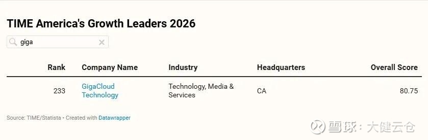 2025年10月27日,全球领先的从事自主研发并提供大件商品跨境B2B交易解决方案的企业——大健云仓(GigaCloud Technology Inc,纳斯达克股票代码:GCT)宣布入选美国《时代》杂志 “2026年最具成长性企业”(America’s Growth Leaders 2026)排行榜。该榜单是一项极具权威性的排名,表彰在业绩增长、财务稳健及股票表现方面均展现卓越的企业。