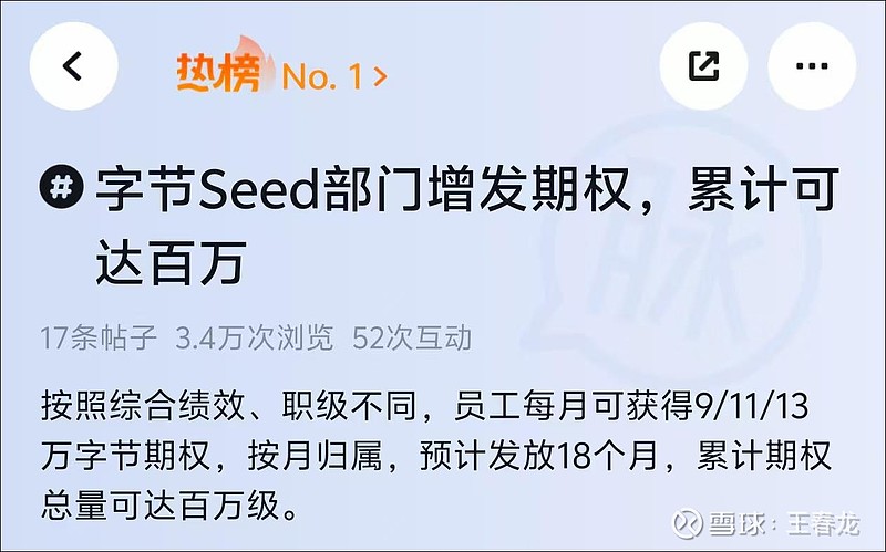 字节跳动大模型团队又让人羡慕了:员工每月至少领9万期权,连续发18个月,最高234万元!