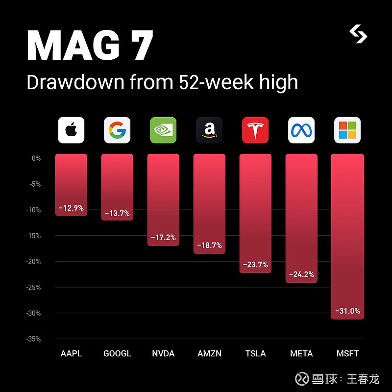 号称“美股七姐妹”的MAG7,从 52 周高点回撤一览: